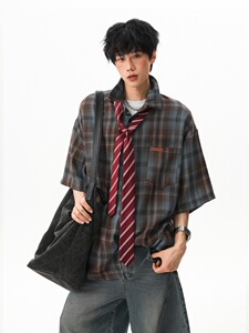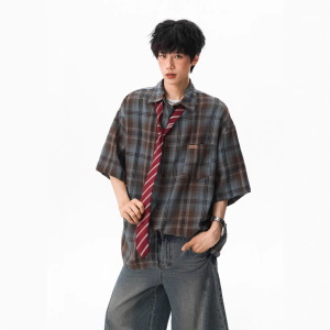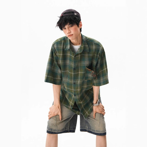 男性と女性のためのレトロな香港スタイルの半袖シャツ、夏のルーズカップルシャツ、怠惰でリラックスした半袖トップス、トレンディな
