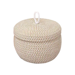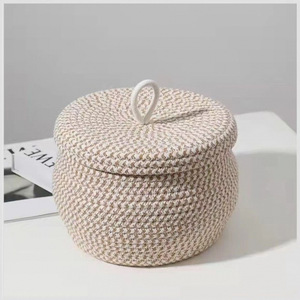 ラウンド卵収納バスケット綿ロープ編みカバー付き防塵スナック化粧品デスクトップ雑貨収納ボックスバスケット