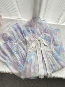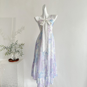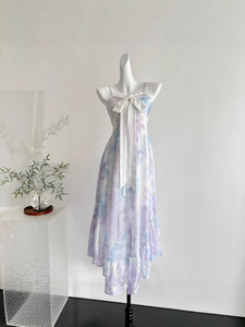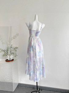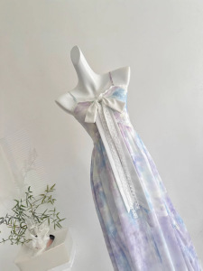 『Xinxing』Bull0313 新作3点セット 美しいブルーミング油絵サスペンダースカート 大きな裾のレディースドレス