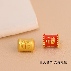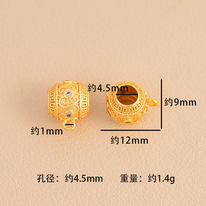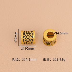 古代の金の色を保つ祝福の文字、大きな穴の樽ビーズ、6文字のマントラビーズ、大きな穴のビーズ、衣類、チャイナドレス、ジュエリーアクセサリー
