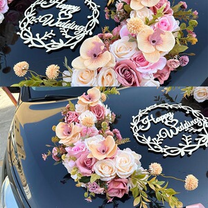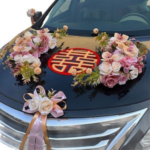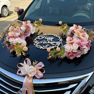カプチーノカラーのフラワーメインウェディングカーデコレーションフロントフラワーウェディングカーセットメインカーウェディングカーフロントフラワー