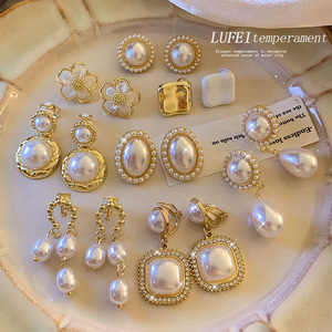 レトロパールイヤークリップ、ノンホールピアス、ニッチシンプルイヤリング、イヤーボーンクリップ、イヤリング、軽い高級感と高級感のある蚊取り線香イヤリング