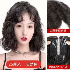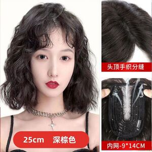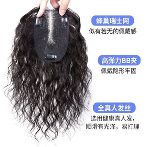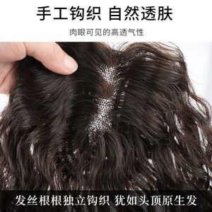 巻き毛用ウィッグ、本物の髪、スイスネットヘアピース、ふわふわ増毛、シームレスな巻き毛、白髪をカバーする頭頂部の補充用ヘアピース