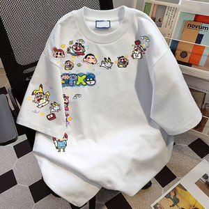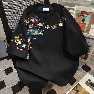 ヘビーウェイトピュアコットン半袖Tシャツカップルスタイルインサマーカジュアルトレンディブランド漫画アニメーションプリントルーズトップ男性と女性用