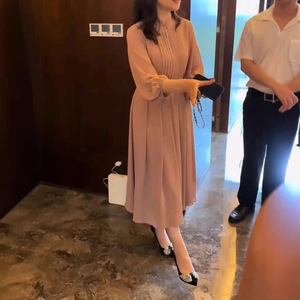 25615 新しい大愛美源 2025 夏の新しい優しいスタイルのエレガントなプリーツミドル丈ドレス痩身
