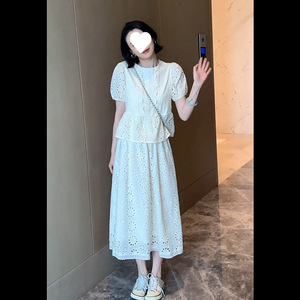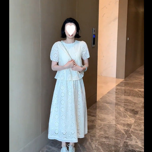 法式高级感刺绣套装裙女夏季新款气质宽松上衣显瘦半身裙