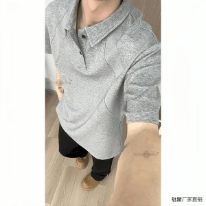 デコンストラクトアメリカンヘビーウェイト半袖シャツメンズ新作夏トレンドブランドカジュアル万能ニッチラペルシャツスウェットシャツチャーミング