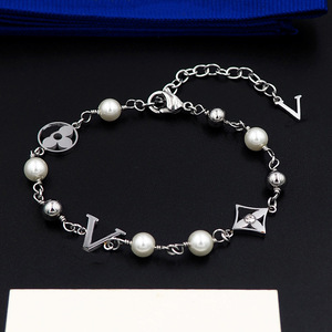 ヨーロッパとアメリカのクロスボーダーロバのV文字ラウンド四つ葉の花パールブレスレットカップルモデルダブルフラワーパールブレスレット卸売