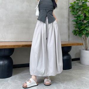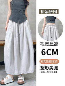 拼接简约南瓜裙半身裙少女风中长款夏季裙子高腰拼接花苞裙白色