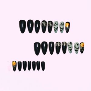 「ダークナイト ウィッチ シャドウ ハロウィン チャーム クロー 女性用 取り外し可能なネイルアート 24 個