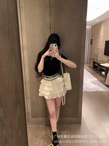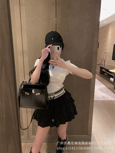 在庫あり 細身刺繍入り半袖とフリル付きケーキスカート 夏用ゴムウエストスカートセット 立体刺繍