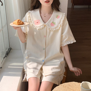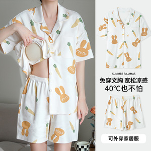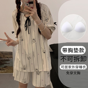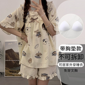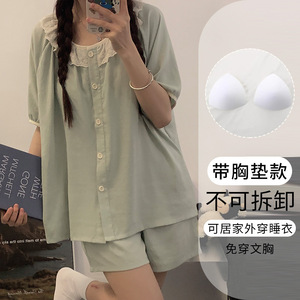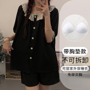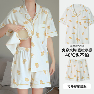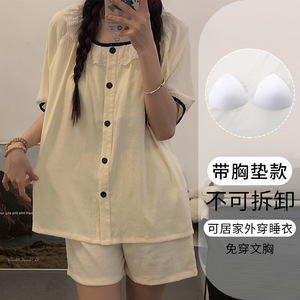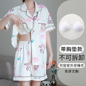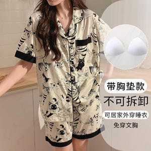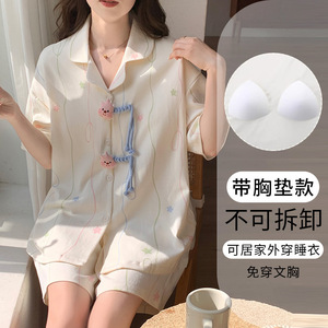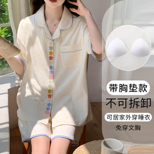 胸パッド付き女性用夏用パジャマ 2025 新しい半袖スイートスターカーディガン夏薄いホームウェアセット