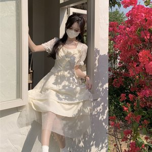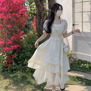 法式白色连衣裙女夏季小个子纱裙蛋糕蓬蓬公主仙女长裙裙子小白裙
