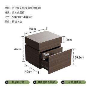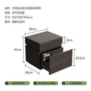 Coolmi 無垢材ベッドサイドテーブルイタリアのミニマリスト寝室隠し引き出し収納キャビネット指紋ロックベッドサイドテーブル