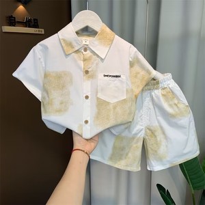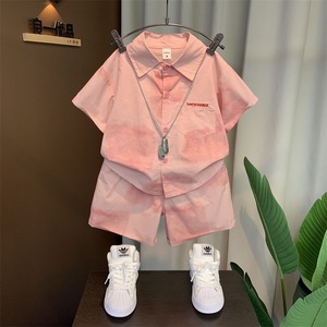 男の子夏シャツ半袖スーツ 2025 新しい子供ベビー夏薄いカジュアルスーツ