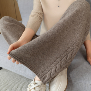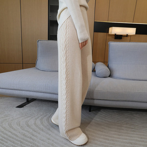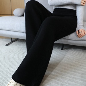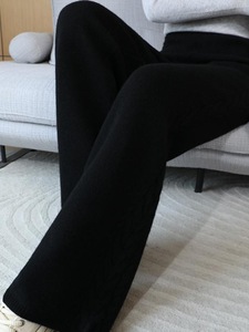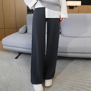 秋冬新作ハイウエストドレープ厚みのあるワイドレッグフロアレングスパンツ