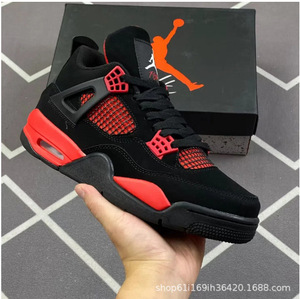莆田靴 aj4 バスケットボールシューズロートップハイバージョン第一層牛革紳士靴と婦人靴カップルスポーツカジュアルシューズ