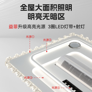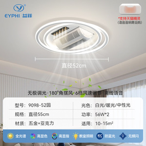 Bluetooth オーディオ付きブレードレスファンランプ、天井モデル、可変周波数、静音、強風、インテリジェントリモコン、目の保護、フルスペクトルランプ