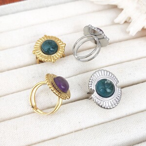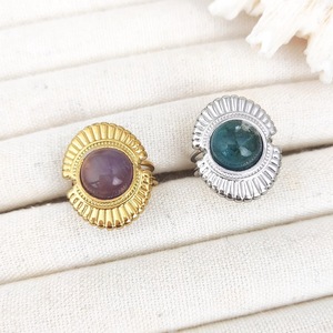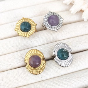 新品天然水晶紫晶戒指活口戒指小众水草玛瑙开口指环不锈钢