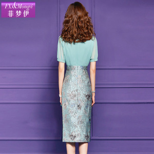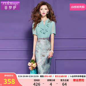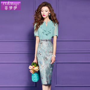 Feimengyi フリルシャツドレス女性の夏のユニークでシックな軽くてエレガントな偽ツーピースプリントヒップスカート