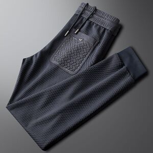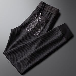 軽くて高級なヨーロッパのバタフライスモールラベルメンズカジュアルパンツ、秋の万能スリムフィットニットスウェットパンツ、チャーミング