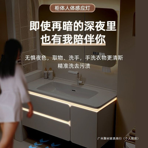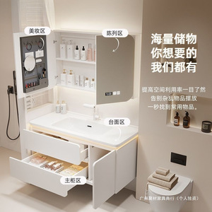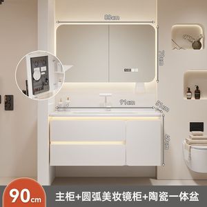 新しいシンプルなクリームスタイルのバスルームキャビネットセラミック一体型洗面器組み合わせバスルームシンク手洗い洗面台キャビネット