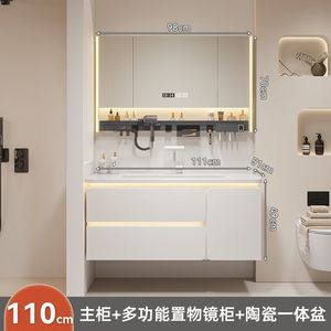 【多機能ミラーキャビネット】設置込み-110cm陶器一体型洗面器