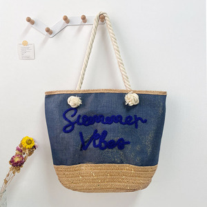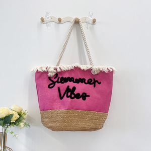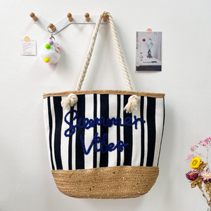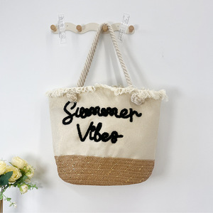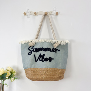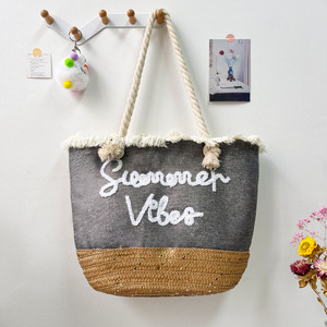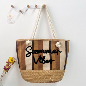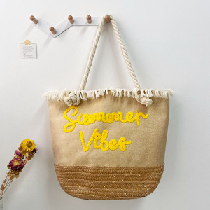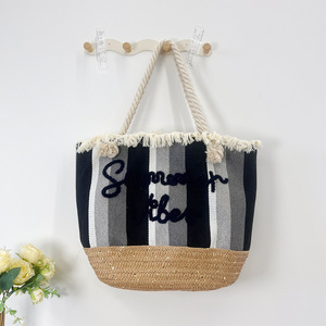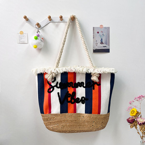 新しいタッセルストライプショルダーバッグレディース大容量多用途ファッショナブルなストロービーチバッグ刺繍レタートートバッグ