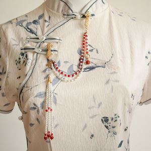 古代スタイルのチャイナドレス襟蓮パールタッセル蝶ペンダント漢服襟胸ペンダント装飾ブローチアクセサリー