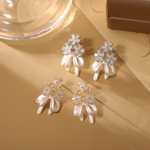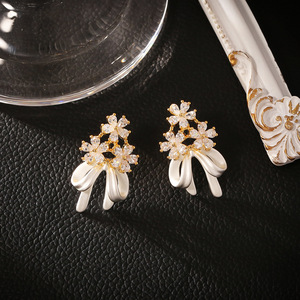 ジルコンフラワーリボンイヤリングライト高級 S925 シルバー針スーパー妖精イヤリングハイエンドファッション多用途イヤリング卸売