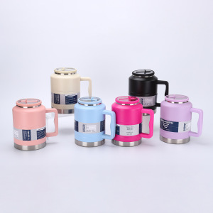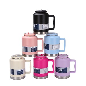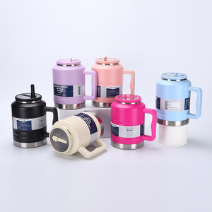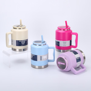 新しい大容量ストロー付きハンドル付きアウトドアスポーツウォーターボトル304ステンレス鋼真空断熱カップ