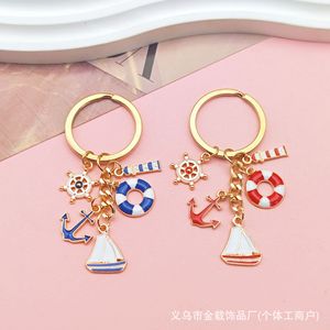 国境を越えた航海帆船のキーホルダーに油を垂らした金属灯台救命輪船舵文創プレゼントバッグストラップ飾り