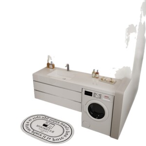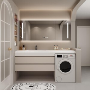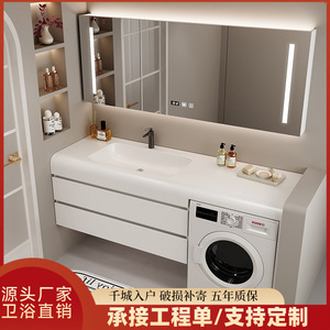 現代的な洗濯機キャビネット、チーメイ石一体型洗面台、浴室キャビネット、洗面台、洗面ボウル、洗面台セット、スマートバスルーム