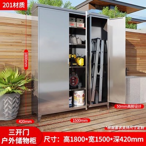 304ステンレス鋼屋外収納キャビネット、庭、中庭、屋外バルコニーキャビネット、家庭用収納ツール、清掃キャビネットメーカー