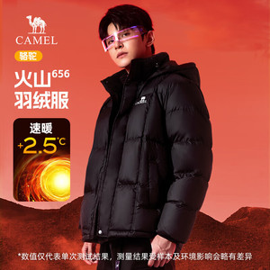キャメルメンズ 2025 新しいダウンジャケットメンズフード付き厚く暖かいカップル同じスタイル黒パン防寒ジャケット