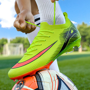 ドロップシッピングクロスボーダーワールドカップシームレスフライ織サッカーシューズメンズロートップ AG スパイク草トレーニングスポーツシューズ男性用