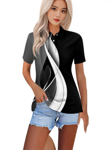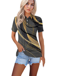 レディース夏のファッションラペルポロシャツプリント半袖スリムフィットトップボタンカジュアルビジネステーシャツ
