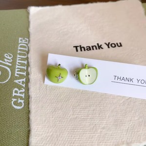 一口で甘い!甘くてかわいいグリーンアップルのイヤリング、ニッチなデザイン、滴る釉薬、子供っぽい雰囲気のイヤリング