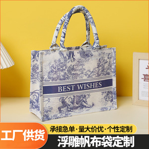 ファッショナブルな新しいキャンバストートバッグ大容量立体ポータブルスーパーマーケットショッピングバッグ結婚式のお土産ギフトバッグ