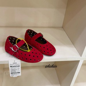 女の子メリージェーンシューズ 2025 夏の新子供の本革中空サンダル薄底浅い口シングルシューズ小さな赤い靴