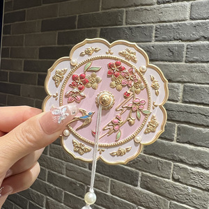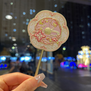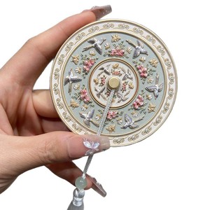 小红书桃花文创手持镜子定 制中式随身手柄化妆镜定 做同款古风镜