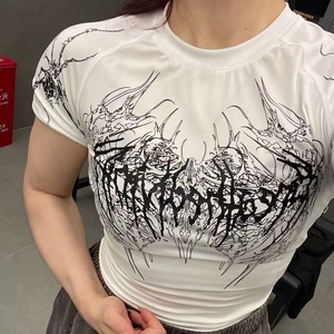 悪魔の羽フィットネス服速乾性ヌードプリント半袖 Tシャツ女性のスポーツランニングタイトなトレーニングトップ夏