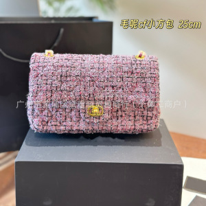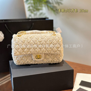 2025 新しいトレンディな小さな香りのバッグ cf ウール菱形チェーンバッグファッショナブルなハイエンドのシングルショルダークロスボディ小さな正方形バッグ