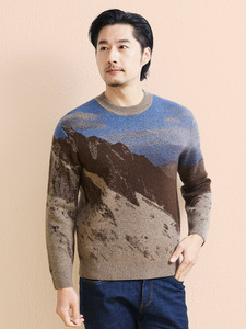 男性用セーター加工工場のデザイナーのヤクベルベットセーターのグラデーションカラーラウンドネック厚みのある冬のトレンディなブランドを見つける