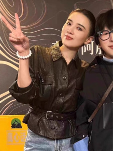 Song Jiaと同じスタイルのHainingレザージャケットレディースショートファッションレザージャケットオートバイ2025春の新スタイル