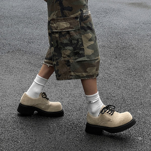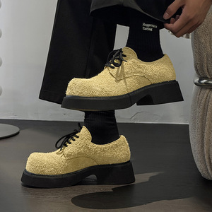 英国風厚底ダービーシューズ92332 ロングファー ブラック ブラウン ブルー グリーン-J