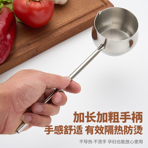 304 ステンレス鋼スープスプーンロングハンドルホットオイルスプーンキッチン家庭用木製ハンドルオイルスプーンミニポットスープオイル調味料