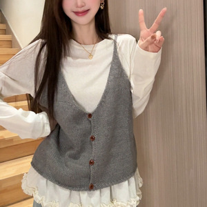 ニットベストキャミソールレディース韓国Vネック2025春新デザイン重ね着外国風年齢軽減トップス