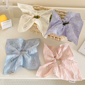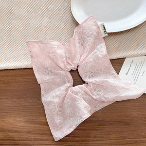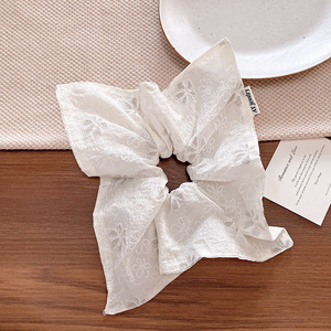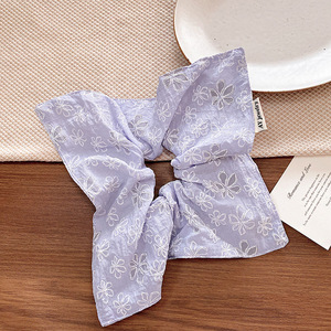 韓国のバレエ風スイートガール風スカーフ、刺繍入りフラワーヘアゴム、高級感のあるプリーツポニーテールヘアアクセサリー