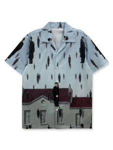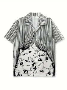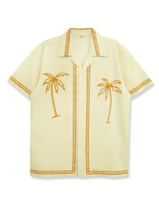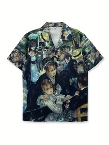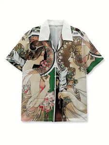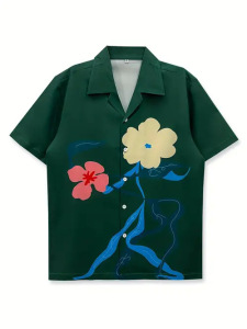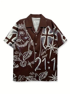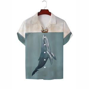 クロスボーダーメンズ夏の新ファッショントレンドキューバカラー半袖シャツシンプルな 3D デジタル印刷カジュアルオールマッチ